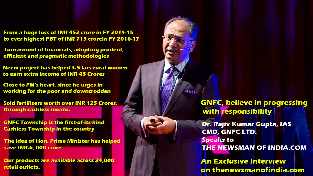 THE NEWSMAN OF INDIA.COM In an exclusive interview with Dr. Rajiv Kumar Gupta, the Managing Director of GNFC ltd. Dr. Rajiv Kumar Gupta shared his experiences of an unprecedented journey of GNFC’s turnaround, following are the excerpts :-
