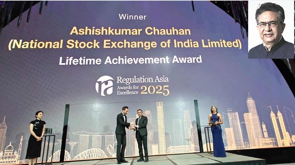 BY THE NEWSMAN OF INDIA|Abul Hasan| In a moment of pride for India’s financial sector, Ashishkumar Chauhan, Managing Director and CEO of the National Stock Exchange of India (NSE), has been conferred with the first-ever Lifetime Achievement Award by Regulation Asia at a prestigious ceremony held in Singapore this evening.