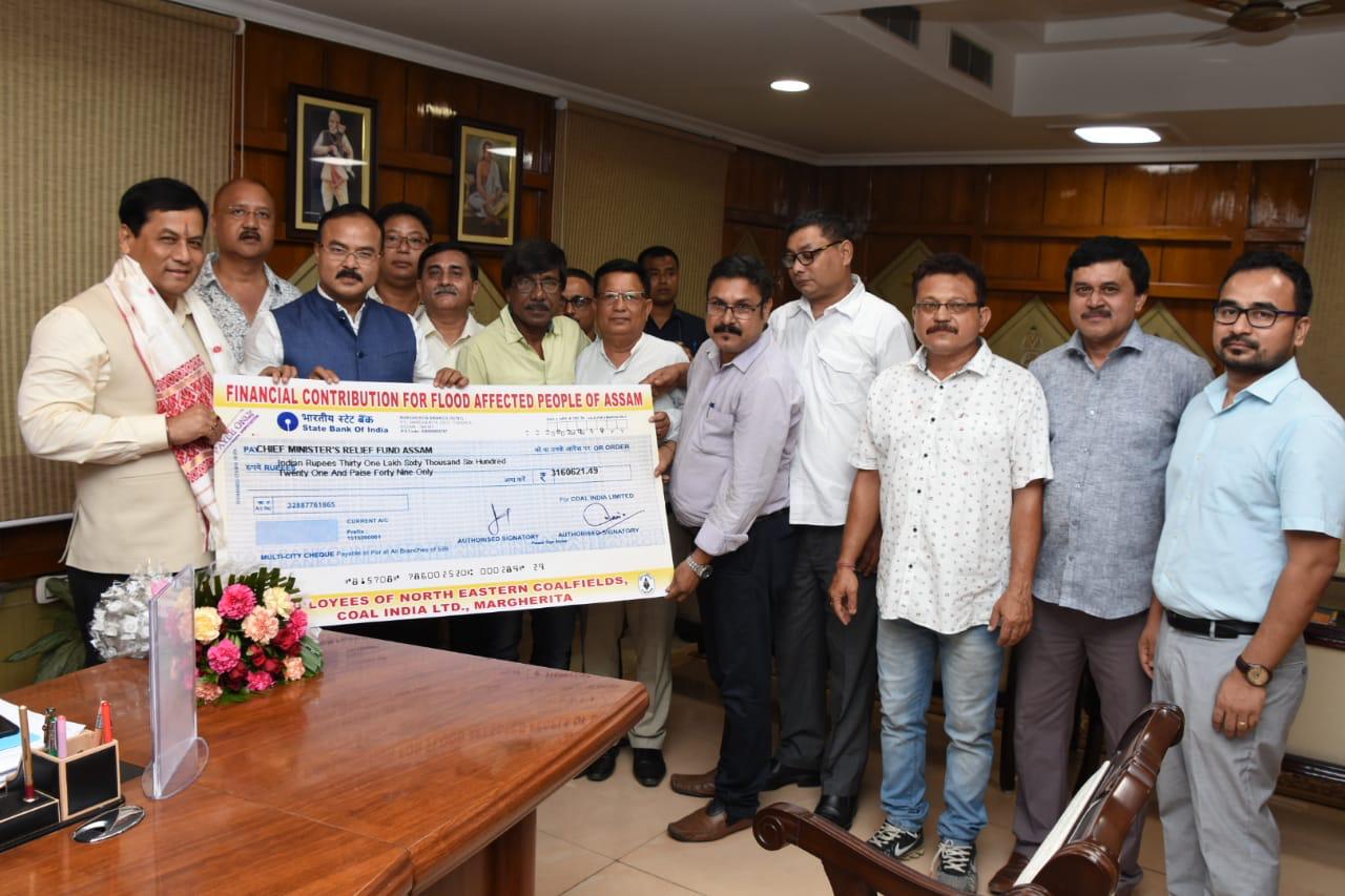 J. K. Borah, General Manager, North Eastern Coalfields, handed over a cheque of Rs. 31.60 Lakhs to Chief Minister of Assam, Sarbananda Sonowal towards the Chief Minister’s Relief Fund for the flood affected people of Assam. Employees of North Eastern Coalfields, Coal India Ltd., Margherita, Assam donated one day’s basic pay to help the victims of the raging floodwaters which wreaked havoc in Assam.