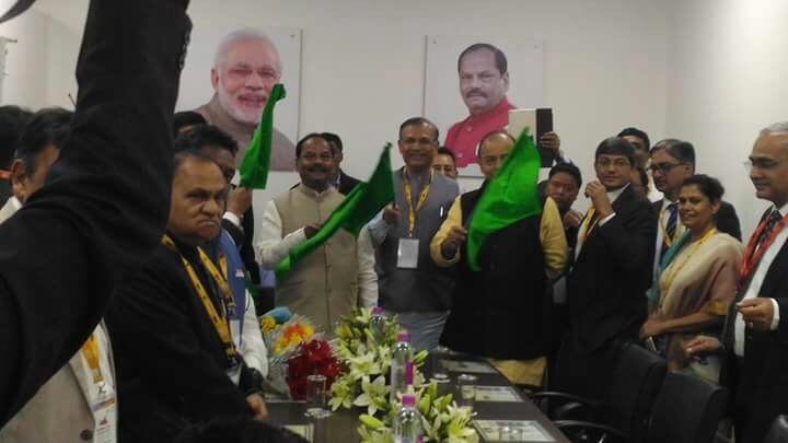 The first coal rake of NTPC’s Pakri-Barwadih coal mine at Hazaribagh has been flagged-off by Arun Jaitley Union Minister of Finance ; Raghubar Das, Chief Minister of Jharkhand, Piyush Goyal Union Minister of State (I/C) for Power, Coal, N&RE and Mines and Jayant Sinha, Union Minister of State for Aviation, through remote control in a ceremony held at Ranchi. Gurdeep Singh CMD, NTPC, Kulamani Biswal, Diretor(Finance) and KK Sharma Director(Operations), were present on the occasion.