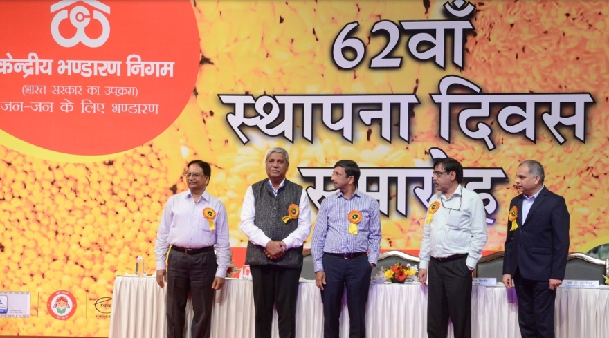 Central Warehousing Corporation celebrated its 62nd Foundation Day on 05.03.2018 at New Delhi. On the occasion, Ravi Kant, IAS, Secretary (Food & Public Distribution) was the Chief Guest Yogender Tripathi, IAS, Chairman,J.S. Kaushal, Managing Director, Sharda Prasad, IAS (Retd), Director and S.C. Mudgerikar, Director (M&CP) were present. Chief Guest lauded the achievements of the Corporation and desired that it would attain greater heights in future. J.S. Kaushal, MD shared that CWC registered a turnover of Rs.1606.29 crores during 2016-17 with profit before tax of Rs.260.59 crores. MD presented a road map for future schemes and diversifications alongwith the achievements made by the Corporation. He congratulated the employees for their efforts and motivated them for even better performance.