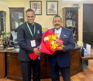 By THE NEWSMAN OF INDIA.COM| Minister of State (Independent Charge) for Personnel, Public Grievances and Pensions, Dr. Jitendra Singh, received a courtesy call from V. Srinivas, who has recently taken over as Chief Secretary of Rajasthan. The meeting provided an opportunity to reflect on their long professional association at the Centre, where Srinivas spent seven years as Union Secretary in the Department of Administrative Reforms and Public Grievances and the Department of Pension and Pensioners’ Welfare.