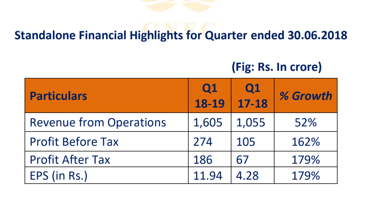 4. EPS of Rs. 11.94: (179% higher than the Rs. 4.28 during corresponding Q1 of previous year.)