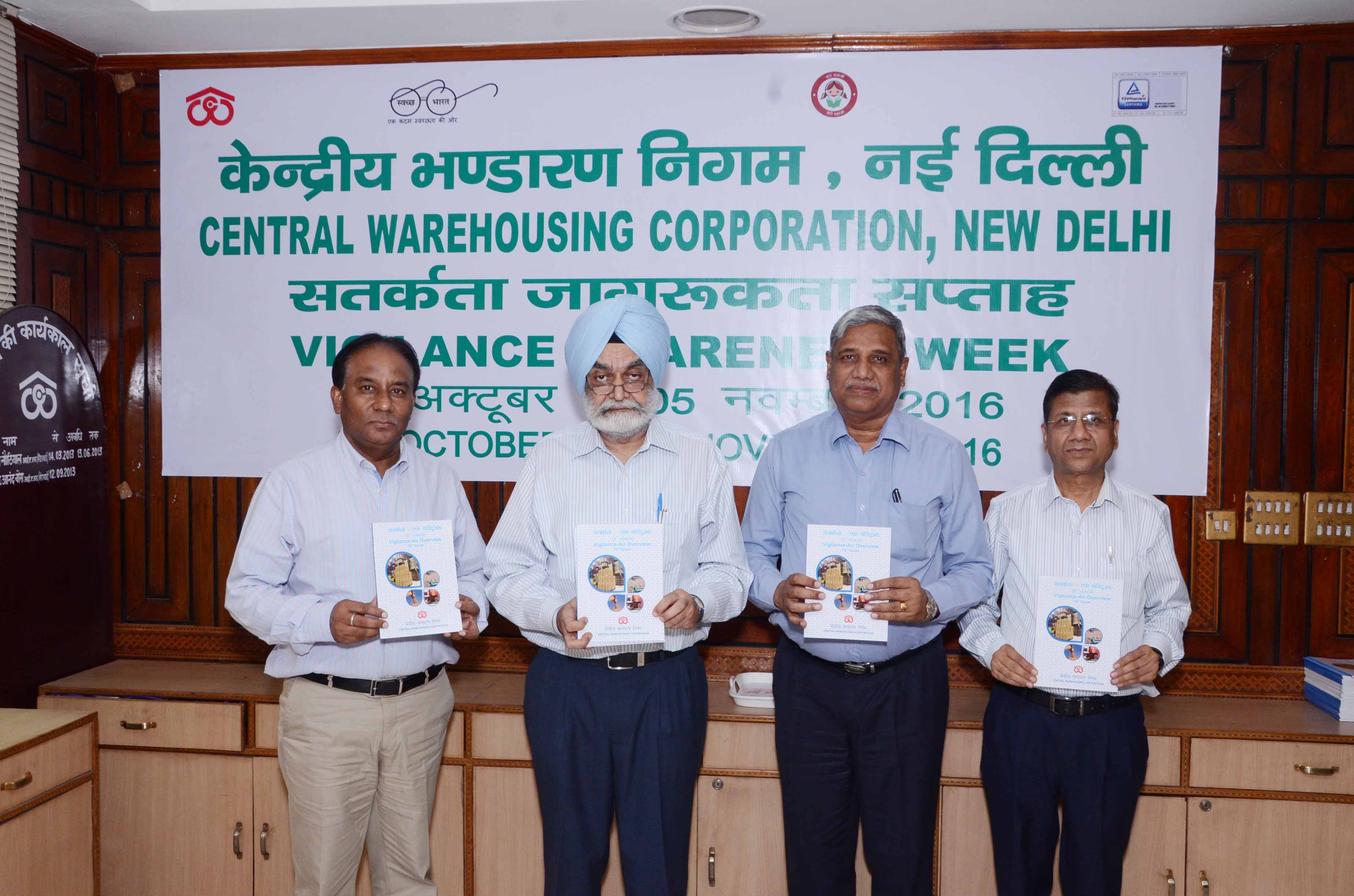 A booklet titled Vigilance-An Overview (16th issue) has also been released by Harpreet Singh , MD,CWC in the presence of V. R. Gupta ,Director(Fin.),J.S. Kaushal, Director (Pers.) and S. S. Badhawan,IFS, CVO.