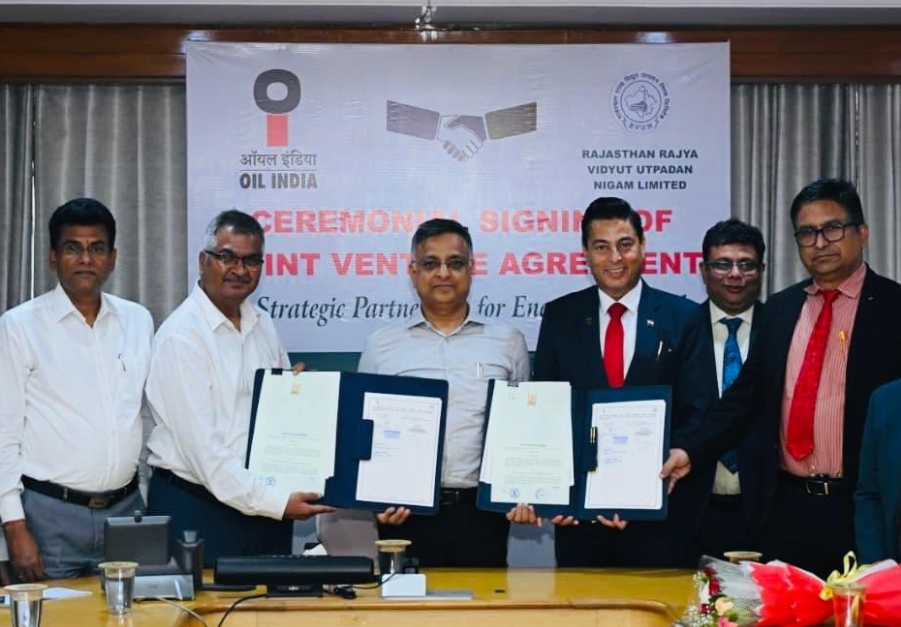 By THE NEWSMAN OF INDIA.COM Oil India Limited (OIL), a Maharatna CPSE under the Ministry of Petroleum & Natural Gas, and Rajasthan Rajya Vidyut Utpadan Nigam Limited (RVUNL), under the Government of Rajasthan, signed a Joint Venture Agreement (JVA) in Jaipur today to establish a Joint Venture Company (JVC). The JVC will develop 1.2 GW of renewable energy projects, comprising 1000 MW of solar and 200 MW of wind, within RVUNL’s Renewable Energy Park in Rajasthan. The JVA was signed by Devendra Shringi, Chairman & Managing Director of RVUNL, and Ranjan Goswami, Executive Director (Business Development) of OIL in the presence of Ajitabh Sharma, Principal Secretary Energy, Rajasthan and Trailukya Borgohain, Director (Operations), OIL.The JVC will harness OIL’s energy sector expertise and RVUNL’s extensive experience in power project development to deliver sustainable energy solutions. The partnership will focus on solar, wind, green hydrogen, and other renewable energy initiatives, supplying clean power to Distribution Companies (DISCOMs) and commercial customers. To strengthen India’s renewable energy ecosystem and support the nation’s green energy transition, OIL has established a wholly owned subsidiary, OIL Green Energy Limited (OGEL). OGEL drives OIL’s clean energy strategy by building a diversified portfolio in renewables, compressed biogas (CBG), energy storage, and green hydrogen. This initiative aligns with OIL’s ambitious goal of achieving net-zero carbon emissions by 2040 while ensuring sustainable returns.The agreement marks a significant step toward advancing India’s renewable energy goals, fostering innovation, and contributing to a cleaner, sustainable future.