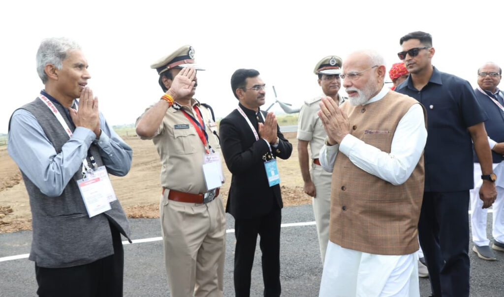 On his arrival at Bhainsola helipad, Prime Minister Modi was accorded a warm welcome by Governor Mangubhai Patel and Chief Minister Dr. Mohan Yadav, who presented bouquets and extended greetings. Senior dignitaries, including Chief Secretary Anurag Jain and Director General of Police Kailash Makwana, were also present to receive the Prime Minister.