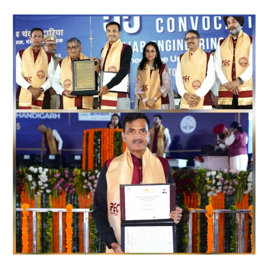 By THE NEWSMAN OF INDIA.COM| Chandigarh: Shri Ravindra Kumar Tyagi, Chairman & Managing Director, Power Grid Corporation of India Limited (POWERGRID), a Maharatna CPSU under Ministry of Power, Govt. of India, has been conferred the degree of Doctor of Science (Honoris Causa) by Punjab Engineering College (deemed to be University), Chandigarh, in recognition of his outstanding contributions in the growth of Power Sector in India including contributions in the field of Electrical Engineering, Science & Technology. The honorary doctorate was bestowed upon R. K. Tyagi by Gulab Chand Kataria, Governor of Punjab and Administrator, UT Chandigarh, during the 55th Convocation Ceremony of the institution held at Chandigarh.