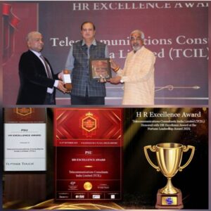By THE NEWSMAN OF INDIA.COM| 14 OCT 2025 PIB Delhi | Telecommunications Consultants India Limited (TCIL), a Miniratna Schedule ‘A’ PSU under the Department of Telecommunications, has received the HR Excellence Award at the Fortune Leadership Awards 2025, held on October 11 at Radisson Blu Plaza, Delhi. The award honors TCIL’s exemplary HR practices, employee development, innovation, and inclusivity. The award was presented by Dr. Dinesh Upadhyay, Former Member, Ministry of AYUSH, and M. S. Nethrapal, IRS, & accepted by P. Suresh Babu, CGM (HR), in the presence of distinguished leaders from across sectors.