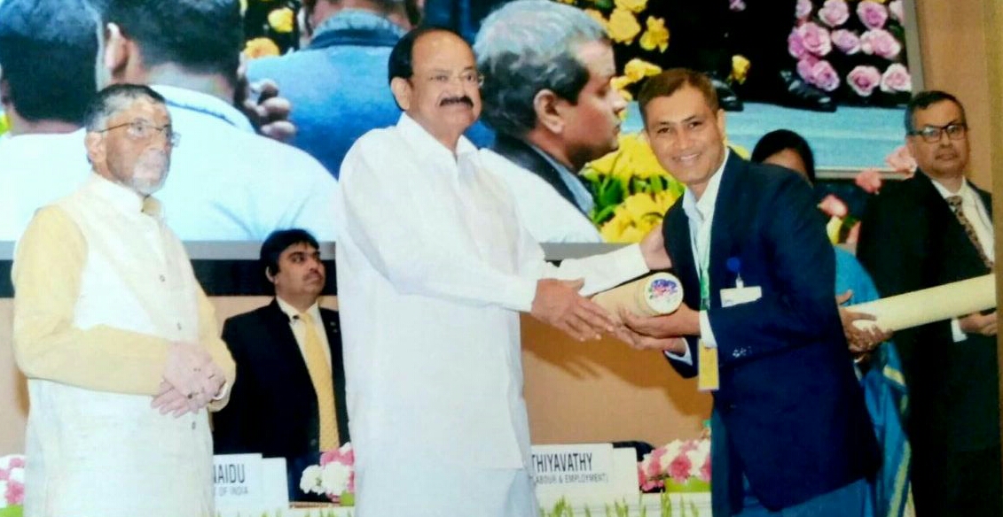 Nimesh Darji, is a senior technician at GNFC ltd. He joined in 1994 as a trainee, and since then has not looked back. It is because of Darji’s experience and presence of mind at the Acetic Acid unit that major mishap was avoided and also prevented shutting down of the plant in 2015.Recognising Darji’s effort, prompt action and quick decision taken by him at several instances at plant operations, he was honoured with ‘Shram Veer’ award by the Vice President Venkaiah Naidu. Nimesh Darji was also awarded Shram Ratna Award by the Government of Gujarat.The Presentation ceremony of Prime Minister Shram Awards was held in Vigyan Bhawan, New Delhi where Venkaiah Naidu,Vice President gave away the awards to 338 workers in the presence of Santosh Kumar Gangwar, Minister of State (Independent Charge) for Labour & Employment. About Award: The Prime Minister Shram Awards were instituted in the year 1985, and are given to workmen who have distinguished record of performance, demonstrated devotion towards duty of a high order, specific contribution in the field of productivity, safety, quality, proven innovative abilities, conservation of resources, presence of mind and exceptional courage. The awards are also given to those workmen, who have risked their lives or made supreme sacrifice of laying down their lives in the conscientious discharge of their duties.